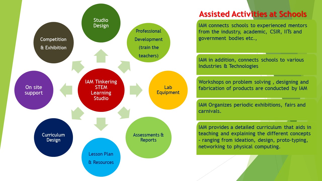 Imagine And Make (IAM) the pioneer and international awarded educational technology company focused on leveraging technology in education. IAM Tinkering STEM Learning Studio is a complete end to end solution for schools which consists of well Trained STEM trainer, Lab Setup, Infrastructure, Content & many more.